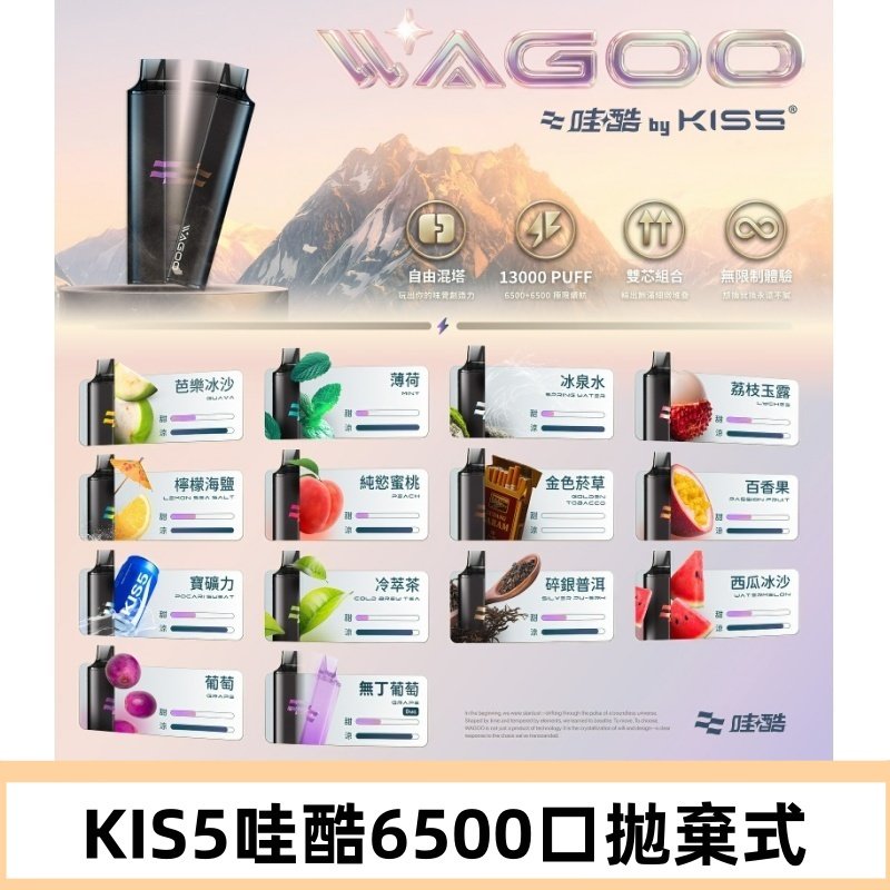 Kis5電子煙 Kiss拋棄式哇酷|WAGOO6500口一次性電子煙